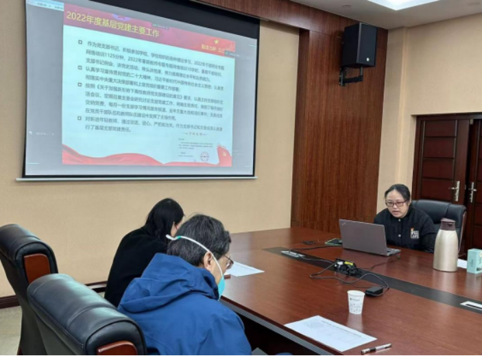 会上,各党支部书记依次进行了述职汇报。过去的2022年,各个教工党支部对标“七个有力”支部建设标准,在基层党建、教师工作室开放日活动、招生宣传、就业推进、核酸检测志愿服务等方面积极主动开展工作,有力地服务了各单位的中心工作,并形成了自己的工作特色;支部成员在学院的各项重大活动组织、重大工作落实中都冲锋在前,攻坚克难,为推动学院的和谐稳定、快速发展贡献了力量。