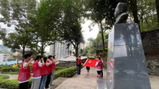 纸上得来终觉浅,绝知此事要躬行。计科先锋宣讲团来到何功伟村、鄂西特委旧址和叶挺纪念馆。一百余级台阶见证了何功伟烈士的不屈与无畏,《狱中歌声》谱写了他的忠诚与决心,囚居软化不了叶挺将军的钢铁意志,《囚歌》方显英雄志气。在党的光辉照耀下,团队成员不禁在纪念碑下展开党旗,宣读入党誓词,以抒心中慷慨激昂的爱国情怀。