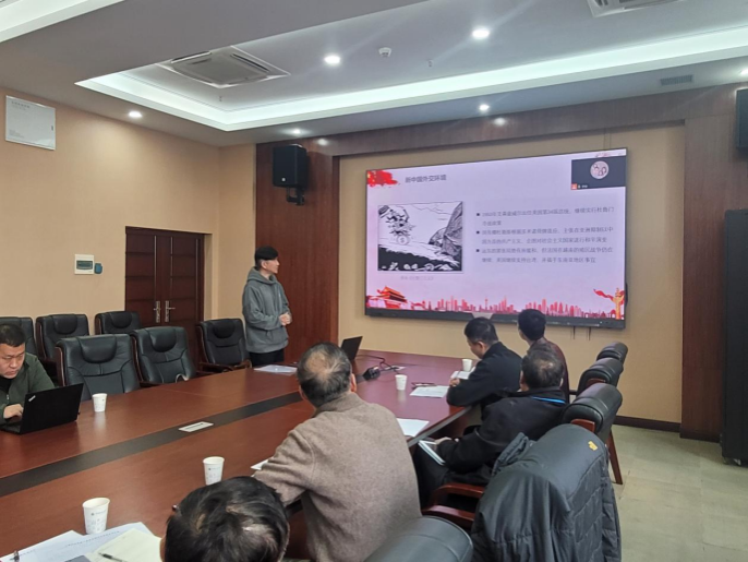 数据科学与大数据系党支部宣传委员李程俊以“周恩来外交风云”为题,分享了新中国外交环境、周恩来的外交实践、周恩来所树立的新中国外交风格,以及新时代外交传承与发展的伟大历程。