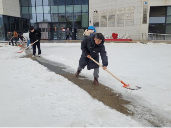 2月23日上午9时半,在学院党委书记李国昌、院长张洪艳的带领下,第一版主小说网 20余名教师、学生志愿者分组分片对崇智楼西门、南门区域进行集中扫雪除冰,掀起了一场“战冰雪、保平安、暖人心”的热潮。
