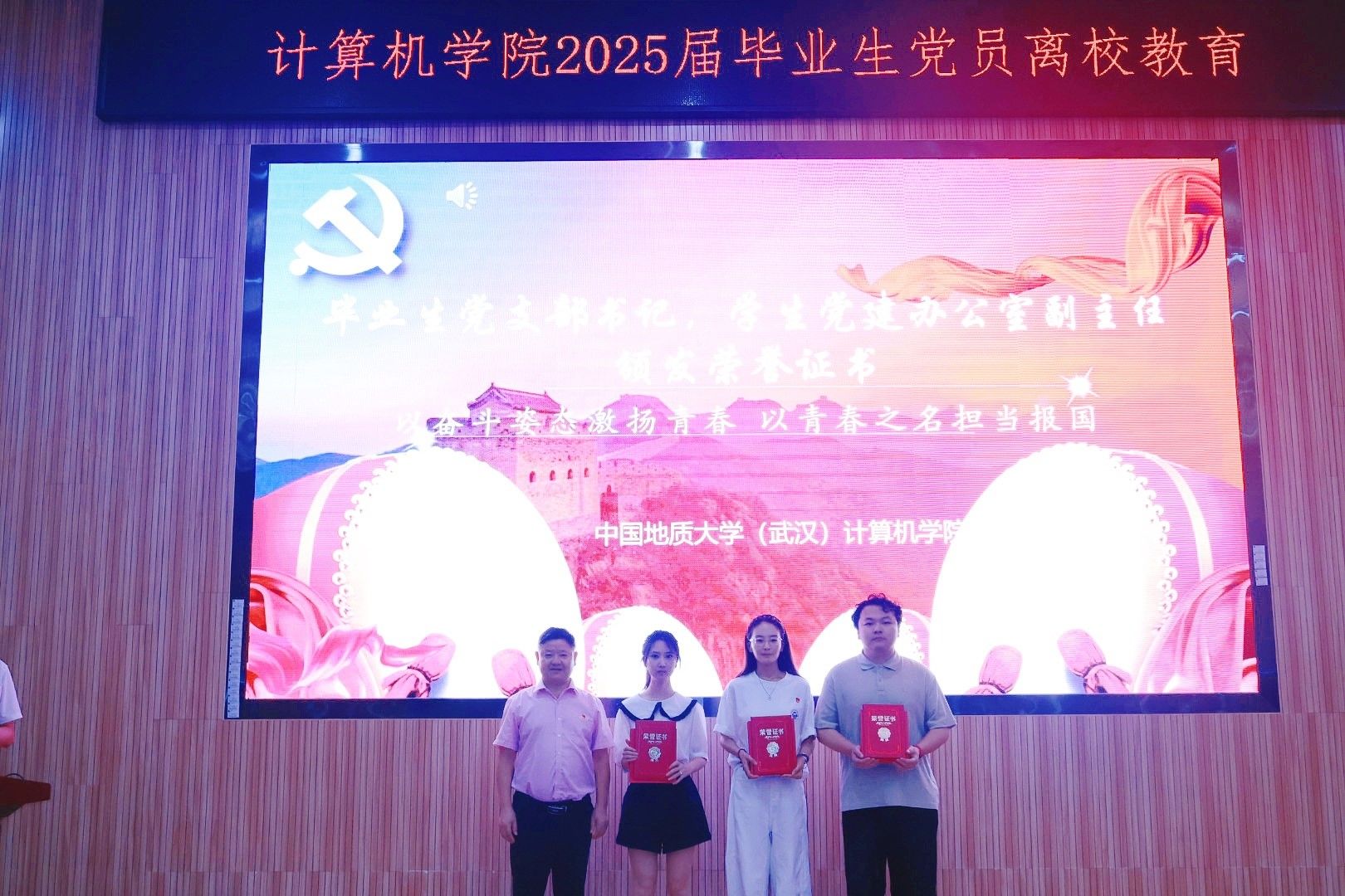 为进一步加强毕业生党员党性修养,强化纪律意识,增强组织观念,充分发挥毕业生党员的先锋模范作用,6月13日下午,学院于126报告厅举行2025届毕业生党员离校教育大会暨党纪学习教育主题党日活动,全体毕业生党员参加。学院党委书记李国昌,党委副书记、纪委书记林小艳,研究生辅导员李欢欢、学生党建办公室主任谭文博出席会议。谭文博主持会议。
