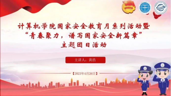 2023年4月26日下午,191211团支部、191212团支部、196212团支部在公教2-112教室共同展开了主题为“青春聚力,谱写国家安全新篇章”的主题团日活动。团会特别邀请到了深信服产业教育中心安全负责人黄浩主讲。