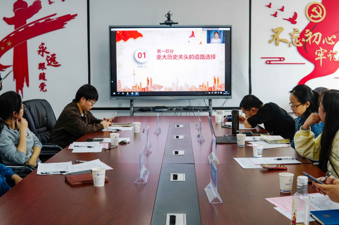 通过团支部书记讲述党的百年奋斗史和学校发展史,宣传党和国家事业以及学校取得的历史性成就、发生的历史性变革,让同学们更加知史爱党、知史爱国、知史爱校,坚定理想信念,厚植爱国爱校情怀。新时代的地大计科人要不负时代重托、不负党的期待、不负人民所望,坚定信念、提振信心、增添力量,在新征程中激扬青春,让青春之花在祖国和人民最需要的地方绽放。
