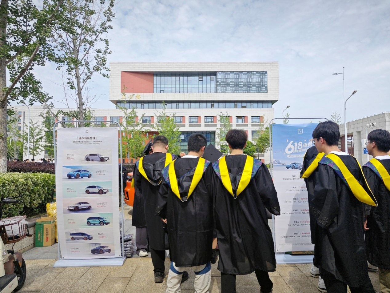 活动还特别设置了“校企直通车”招聘快闪环节,极氪在车辆后备箱和活动现场布置了本集团及其合作企业的最新招聘简章,欢迎毕业生现场投递简历,并送出专属定制车形书签留作纪念,实现“毕业即就业”的无缝衔接,也让“服务学生发展”落到实处。