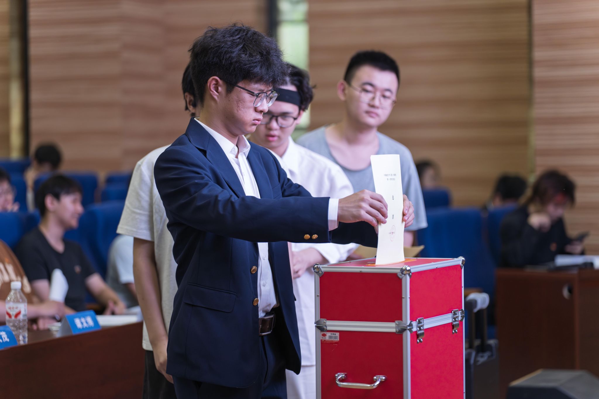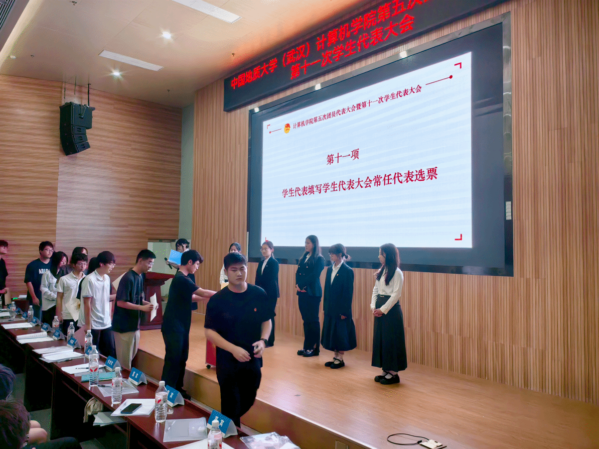 随后,通过选举产生了第十一届学生代表大会常任代表,与会代表上台投票。