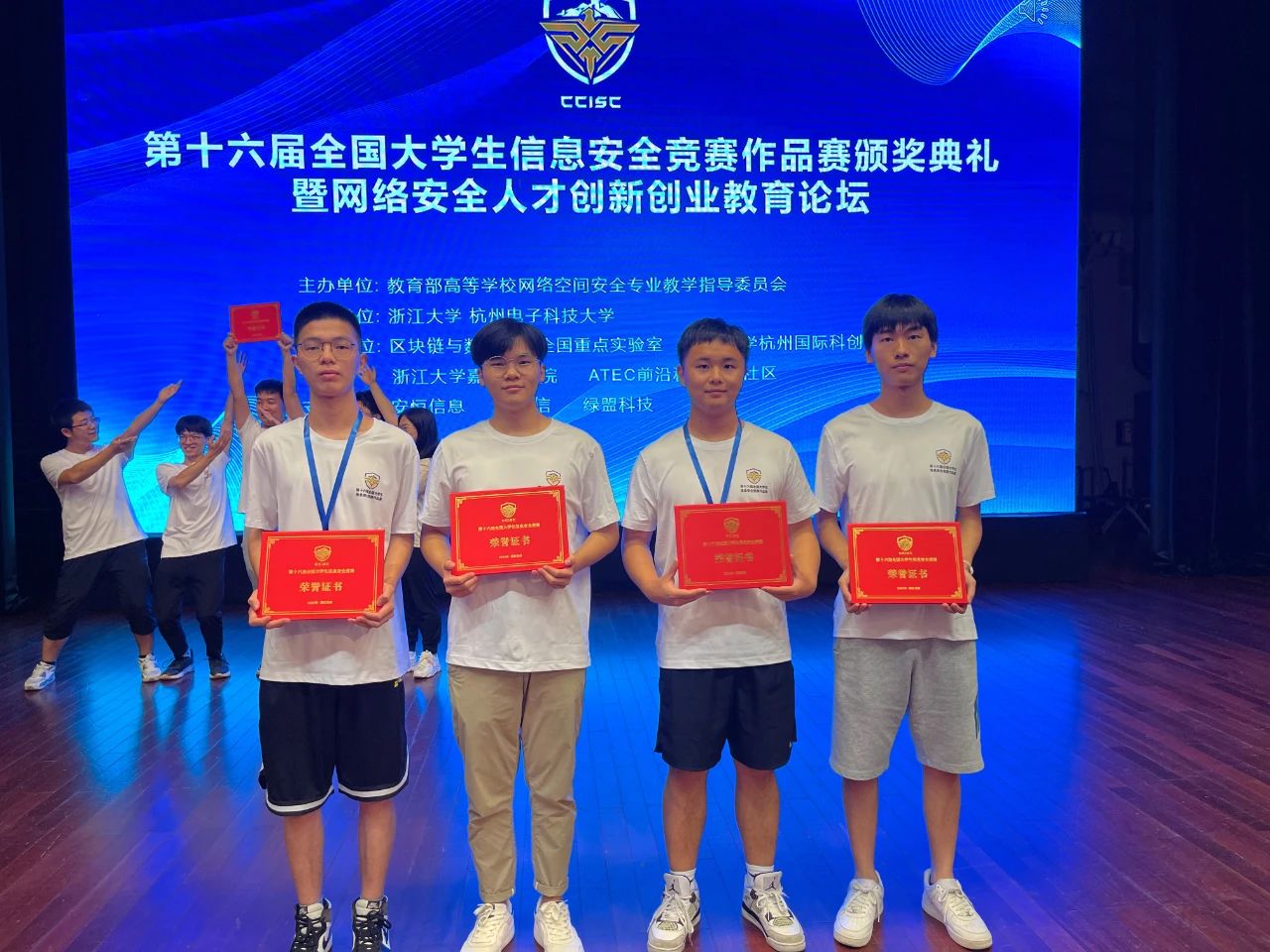 全国大学生信息安全竞赛是含金量很高的本科生国家级赛事之一。近年来该项赛事吸引了大量优秀本科生投入到信息安全作品的设计中,也涌现出了大批创新性的信息安全作品,极大推动了信息安全专业人才的培养。随着参赛队伍的逐年递增,该项大赛的竞争也越发激烈。面对众多来自985高校的竞争队伍,我们的队员稳扎稳打,做好了充足的准备,将近两年来的研究成果完美地呈现给了评委,取得了全国一等奖的佳绩,这也是对无数个日夜奋战辛勤付出的肯定和奖励。在整个赛事的准备和冲刺阶段,队员们坚持不懈,奋力拼搏,展现了地大计科学子坚韧不拔、勇攀高峰的风采。再次对获奖的同学们表示祝贺,祝愿大家在未来的学习中能勇往直前、再创佳绩!