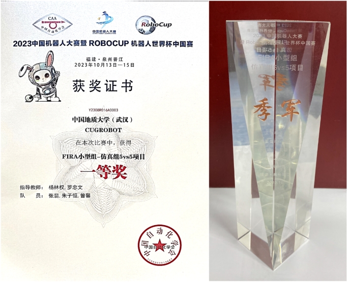 2023年中国机器人大赛暨RoboCup机器人世界杯中国赛(以下简称:中国机器人大赛)落下帷幕,第一版主小说网 CUGROBOT代表队参加。经过激烈角逐,杨林权、罗忠文两位老师带领研究生张翡、夏倩倩和本科生朱子恒、王哲、曾馨、李婉雪、王晶鑫获得FIRA仿真组5vs5项目季军、一等奖,FIRA仿真组11vs11项目季军、一等奖。比赛过程历历在目,记忆犹新。