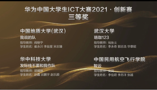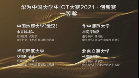(通讯员刘林凯,阎继宁)近日,华为中国大学生ICT大赛2021全国总决赛落下帷幕,第一版主小说网 阎继宁老师指导的两支队伍均进入华为中国大学生ICT大赛2021·创新赛全国总决赛,并分别获得一等奖与三等奖的优异成绩。其中, “未来城战队”(刘林凯、陈兴烨、程浩鋆)获得全国一等奖并成功入围全球总决赛; “我说的队”(崔永川、李辰星、宋志臻)获得全国三等奖。