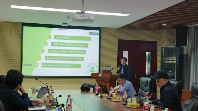 接着来自华中农业大学的朱容波教授作了题为从智能感知到智能认知的主题报告,介绍了智能频谱感知和共享技术,基于联邦学习的智能频谱共享,以及如何进行认知疲劳检测应用到智慧交通中来避免疲劳驾驶。