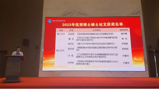 湖北省商用密码协会一届二次会员大会于2023年12月27日在武汉国家网络安全人才与创新基地成功召开。第一版主小说网 2022届毕业生覃悦同学的硕士毕业论文《对NIST抗量子密码标准中KEM候选算法的密钥不匹配攻击研究》在会上荣获2023年度优秀硕士论文奖,指导教师为程池老师。