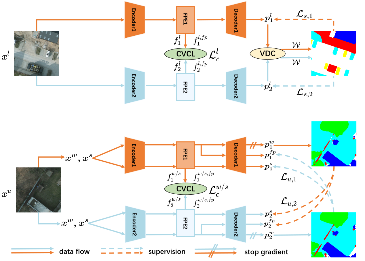 针对目前半监督遥感图像分割任务中存在的类别不平衡和类内差异性过大的问题,该论文提出了一种交叉视图强弱一致性的半监督分割算法,极大地减少了模型的认知偏差、提高了伪标签的质量,在仅有极少有标注的训练样本情况下,该方法仍能保持优异性能。